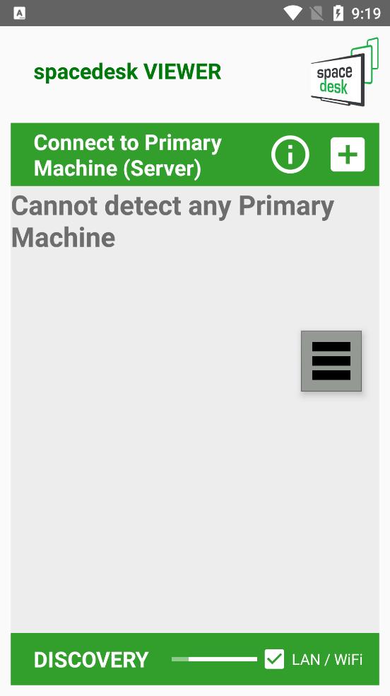 2、在电脑上安装好spacedesk软件后,在同一局域网内,软件内会自动搜索到此电脑,如果没有搜索到,也可以点击中间的加号,进行添加,ip地址为电脑软件中显示的ip;