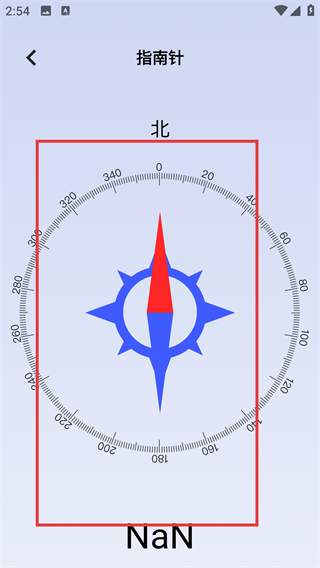 3、进入指南针界面后,页面会显示方向刻度,红色指针会指向北方,帮你快速辨别方位啦。