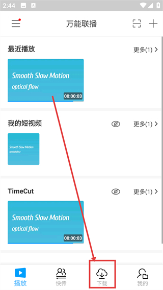 1、在万能联播页面点击底部的【下载】选项,就能进入浏览下载界面,准备搜索资源啦。