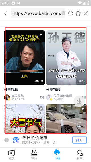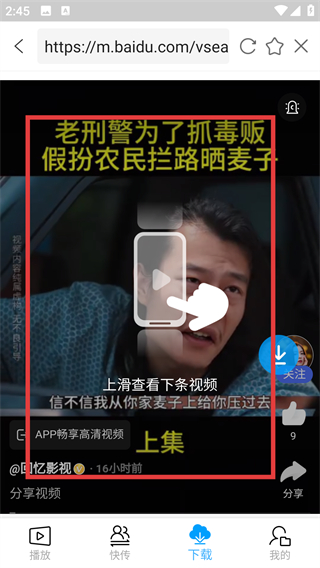 4、在视频播放界面,可观看内容,还能上滑查看下条视频,也能找到下载按钮保存视频哦。