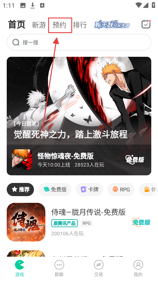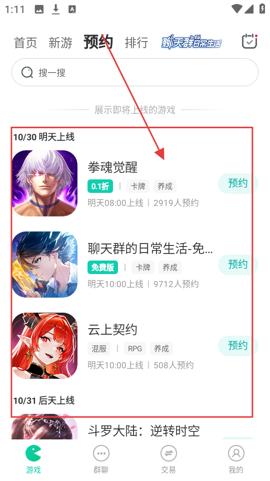 1、想预约即将上线的游戏,点顶部【预约】标签呀,里面有不少待上线游戏,快去看看吧。