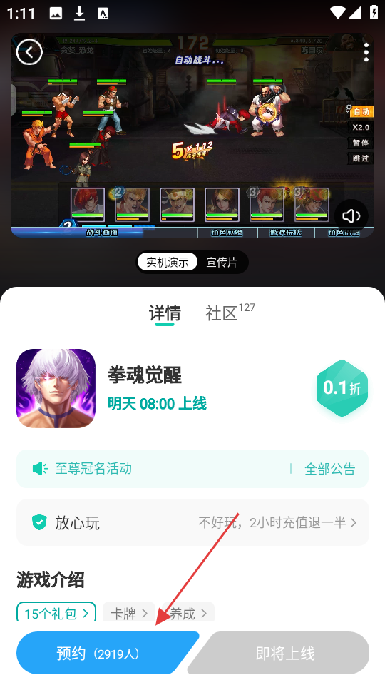 2、在【预约】页面能看到即将上线的游戏列表,挑个感兴趣的,比如【拳魂觉醒】,快去瞅瞅吧。