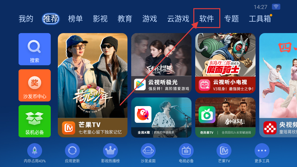 1、打开沙发管家,点击“软件”