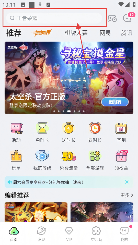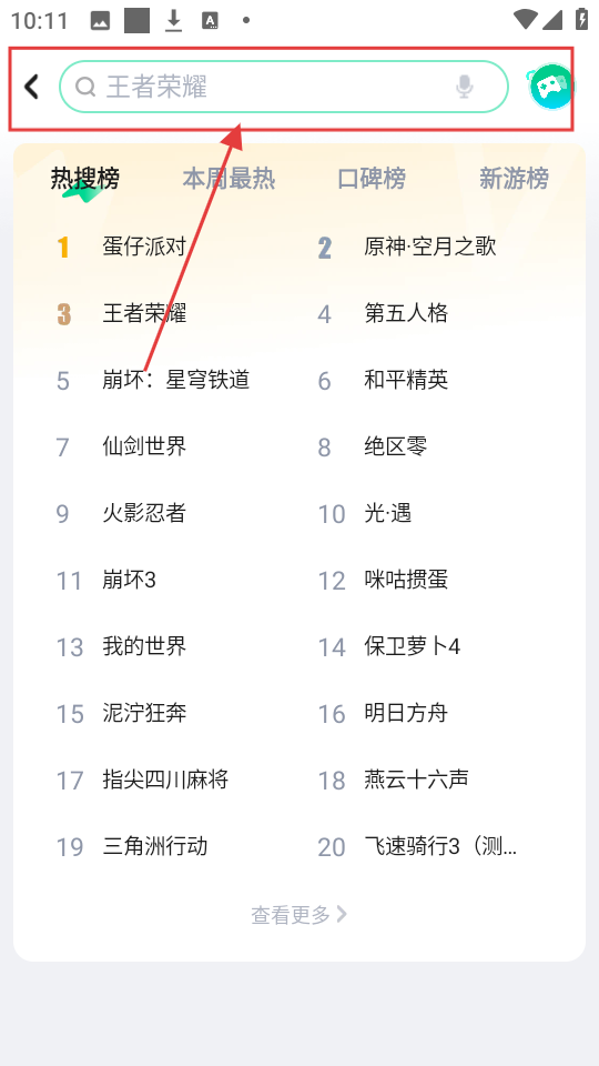 1、在软件首页,点击顶部搜索框,可进入搜索页面,准备查找游戏啦。