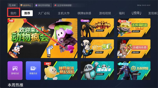 1、在游戏平台的主页面,点击顶部的【我的】选项,可进入个人中心界面,查看专属功能与信息啦。