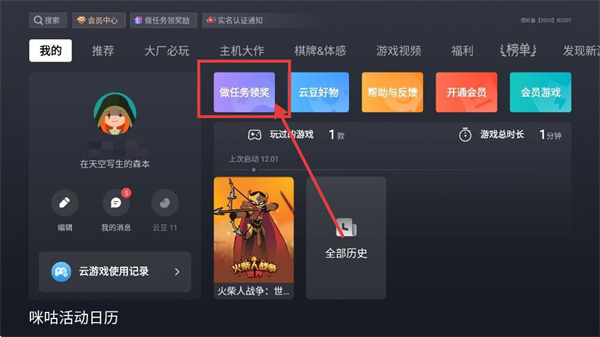 2、进入个人中心后,点击【做任务领奖】按钮,即可进入任务奖励页面,参与签到等任务获取福利哦。