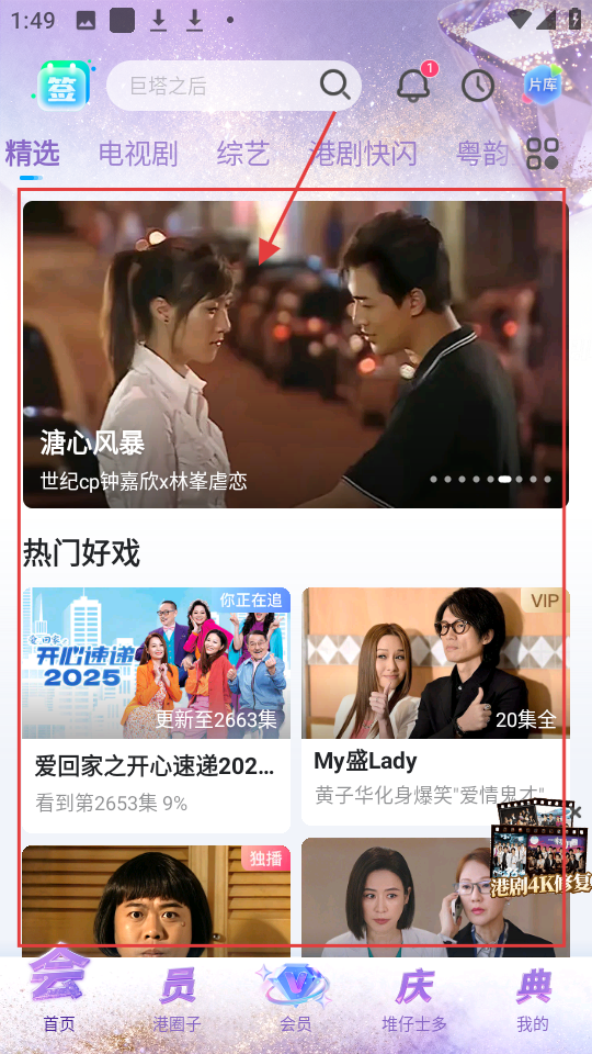 1、看到首页展示的精彩剧集,比如【溏心风暴】,是不是很心动呀,快点击它进入播放页面,开启追剧之旅吧。