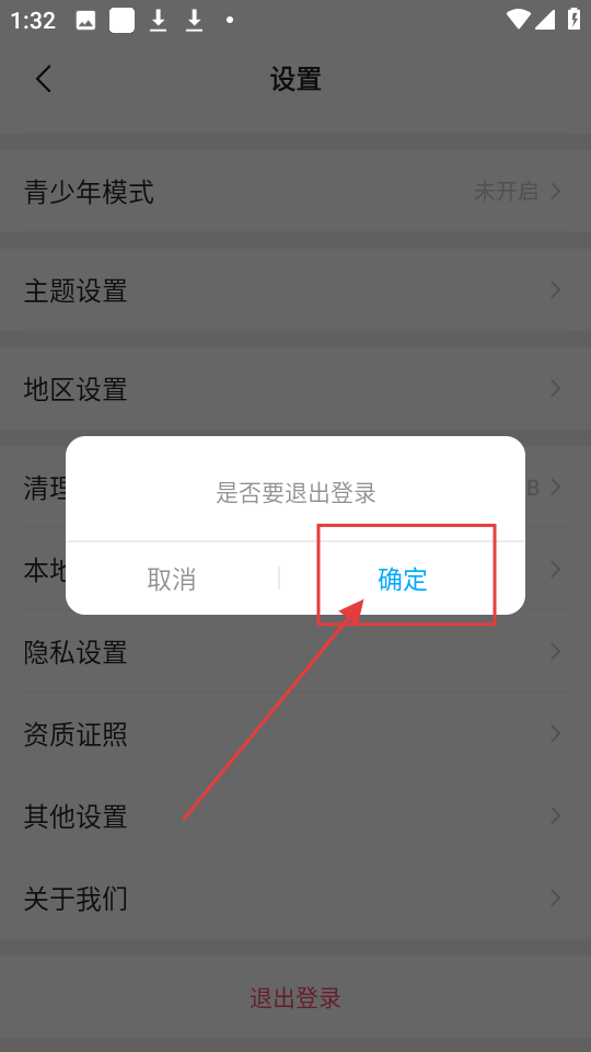 4、点击【退出登录】后,会弹出是否退出的提示框,这时点击【确定】按钮,就能成功退出登录啦。