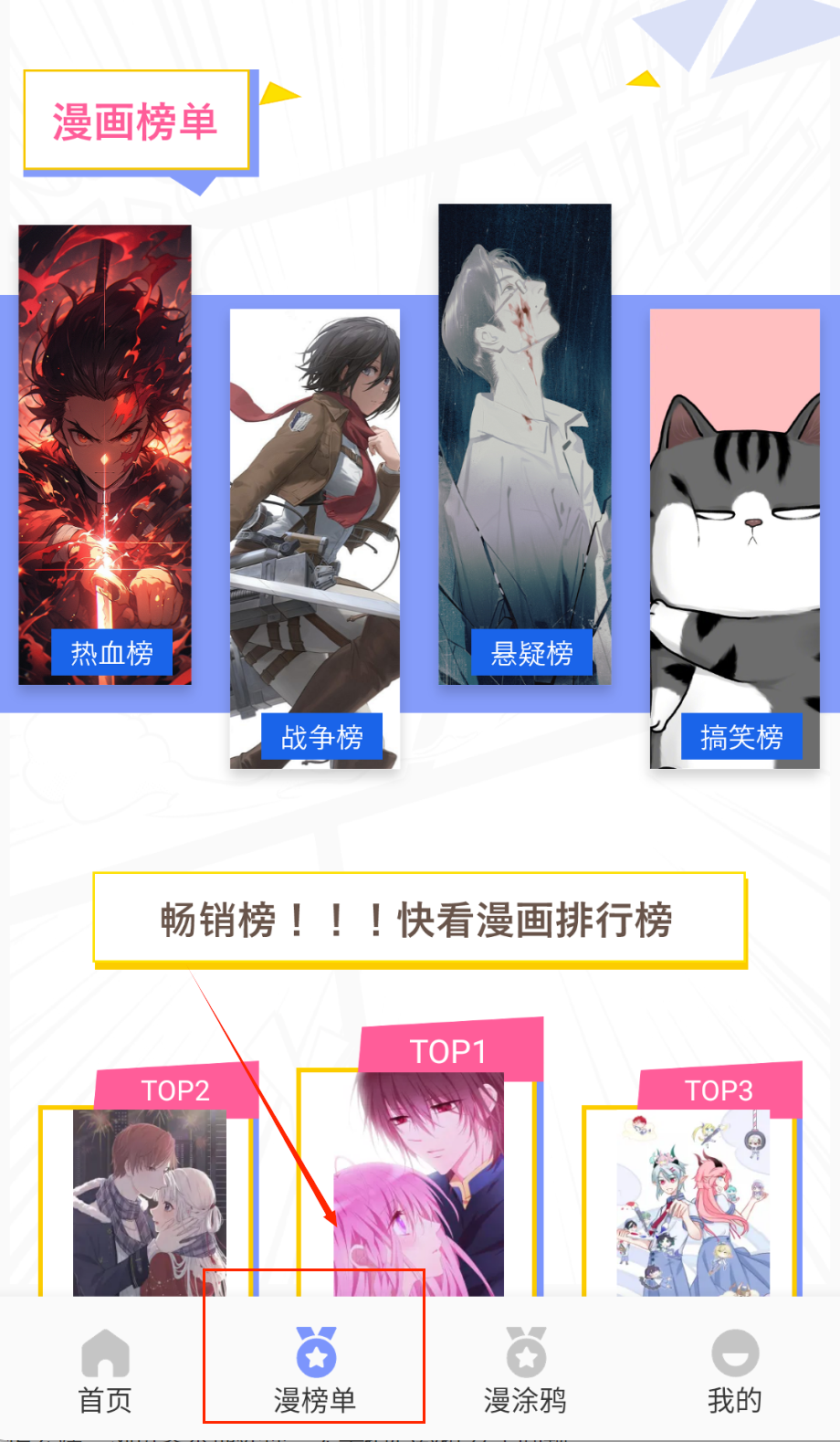 1、便捷使用:便携易用的手机应用,具有简洁清晰的用户界面,其外观简洁美观带给漫迷满足,便于用户学习和熟悉该软件。