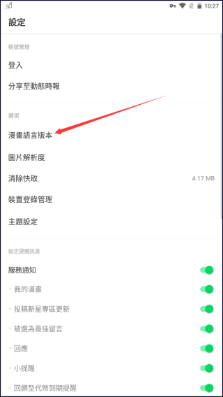 2、点击漫画语言版本选项