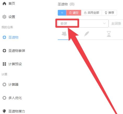 步骤一;打开软件,主界面左侧点击“圣遗物”。