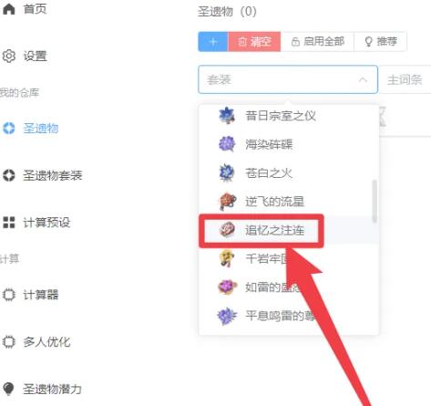 步骤三;点击“追忆之注连”使用莫娜占卜铺鉴定圣遗物套装。
