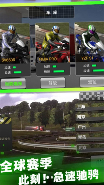 2、多样的游戏赛道:玩家将驾驶摩托车在繁忙的城市街道和蜿蜒的山路等各种赛道上行驶,体验速度与激情的完美结合。