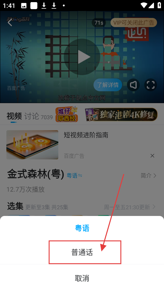 3、在弹出的语言选项中,选择【普通话】,即可将剧集语言切换为普通话,满足语言偏好啦。
