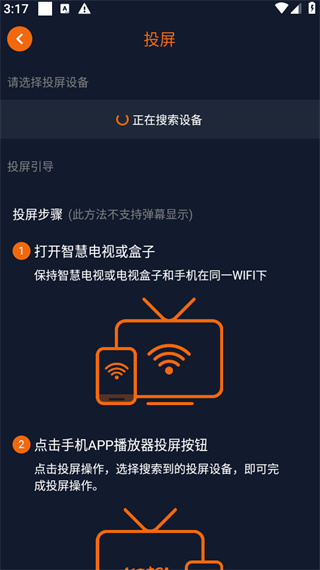 2、点击搜索投屏设备进行连接就可以投屏,需要投屏设备和软件连接相同的WiFi才能搜索到。
