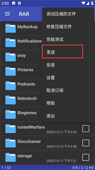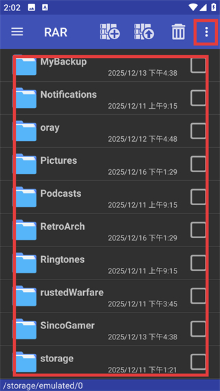 1、在RAR文件列表页找到要操作的文件夹,点击右上角三点按钮,就能展开更多功能菜单啦。