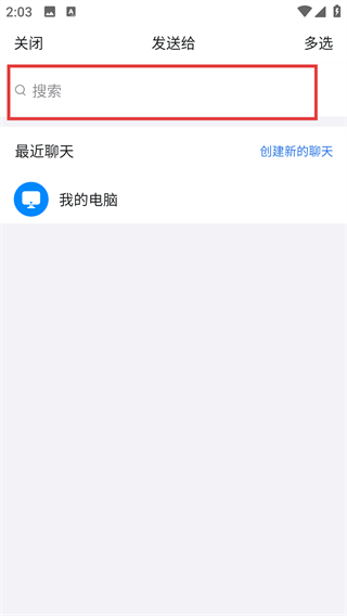 4、在发送对象页面用【搜索】框找目标好友,或选最近聊天对象,就能完成文件发送的最后一步啦。