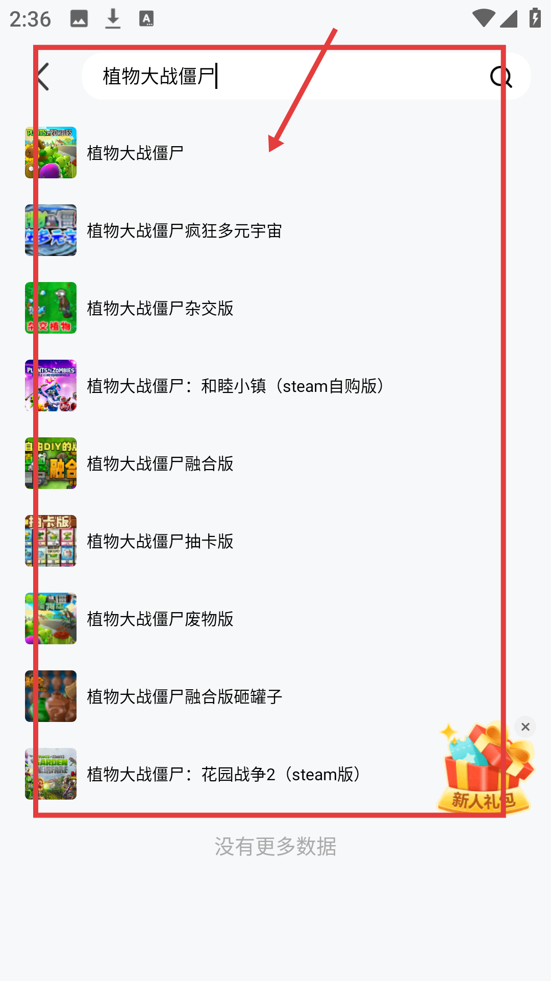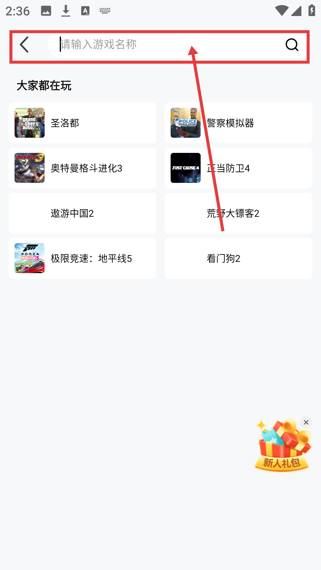 2、在搜索界面的输入框输入游戏名称,即可触发相关游戏的搜索结果列表啦。