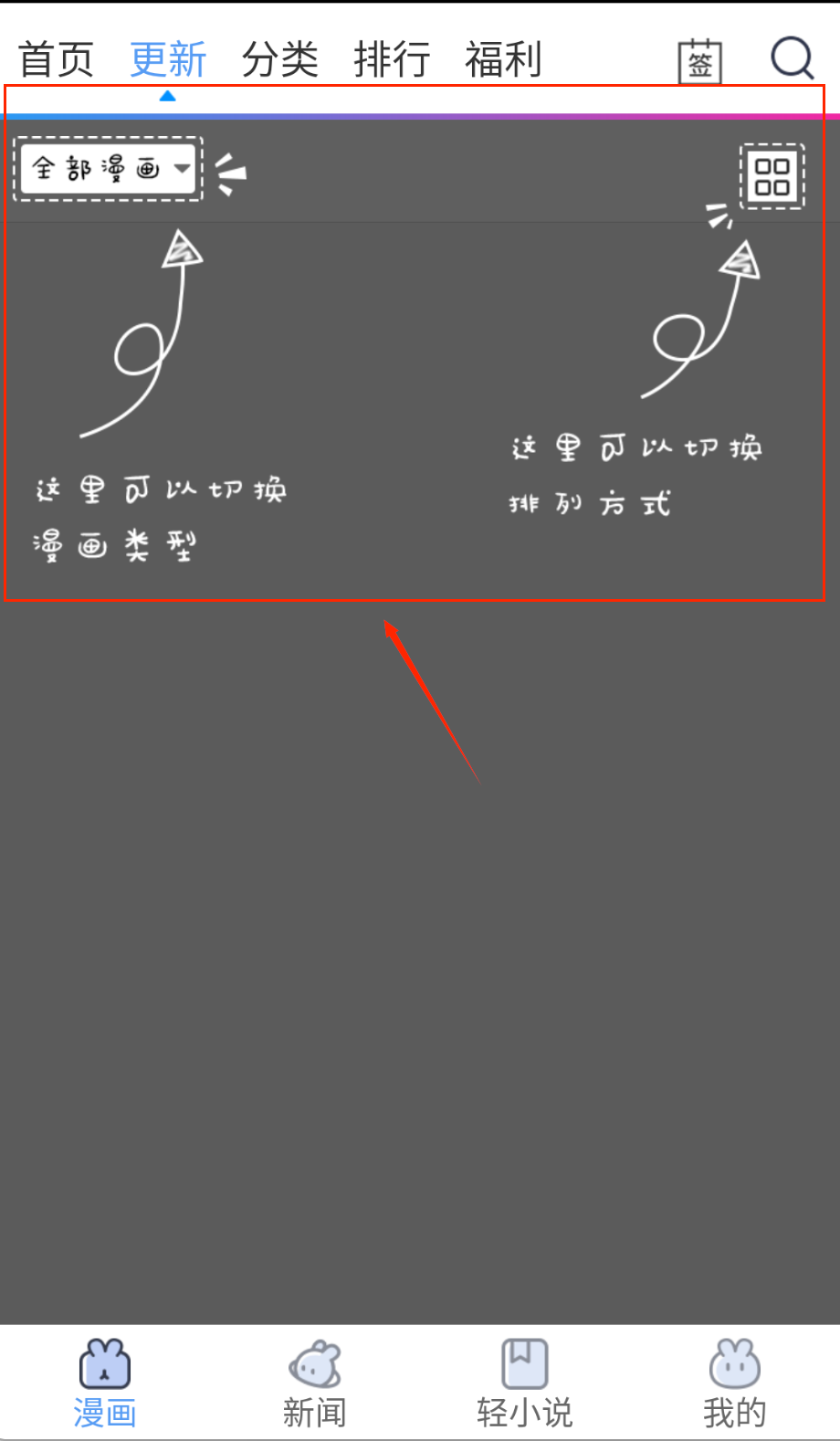 3、阅读漫画时记得使用右上角的排列方式切换功能,可以根据个人喜好按热门度、更新时间或评分来排列作品,这样能更高效地发现优质内容。
