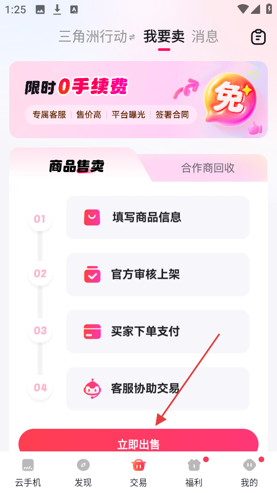 3、进入“我要卖”页面后,点击【立即出售】按钮,按照流程填写哈夫币相关售卖信息。