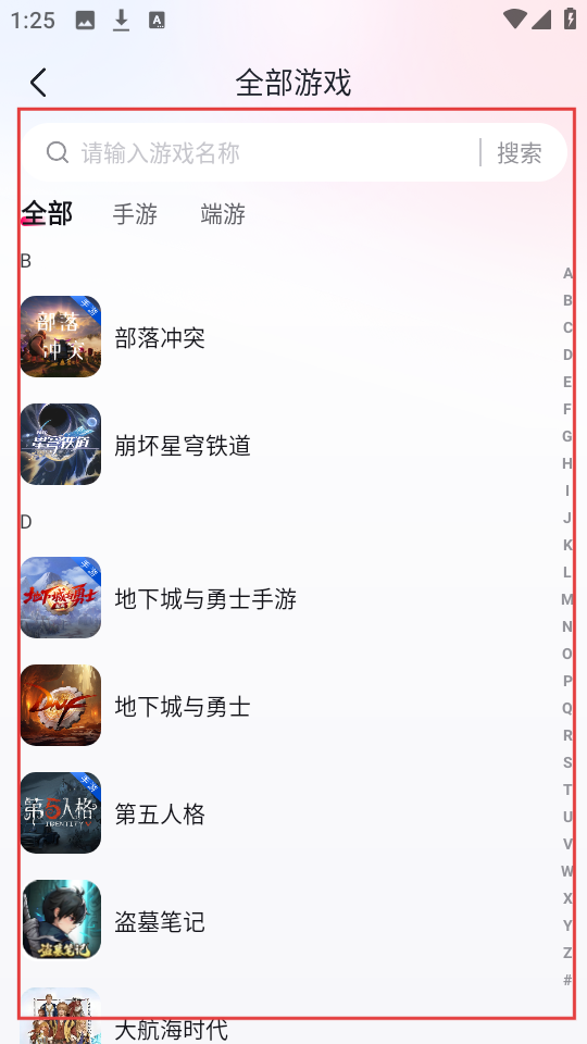 4、若需选择游戏,进入全部游戏页面,找到对应游戏后,继续后续哈夫币售卖操作。