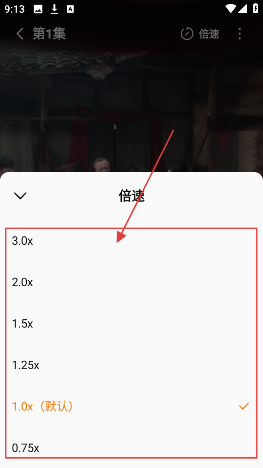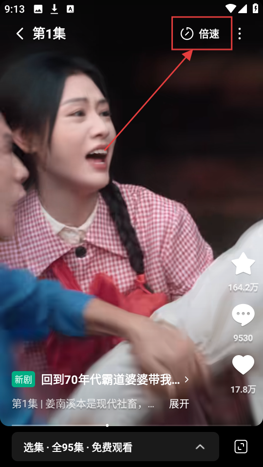 2、在短剧播放页面,点击右上角【倍速】按钮,弹出倍速选择菜单,准备调整播放速度哦。