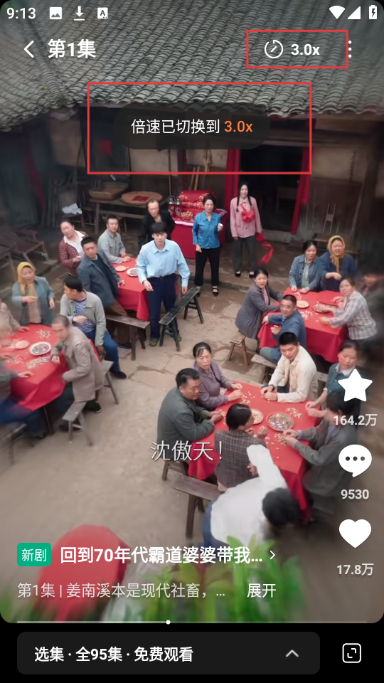 4、选择倍速后,页面显示【倍速已切换到3.0x】,即可按照该倍速观看短剧,优化观看节奏啦。