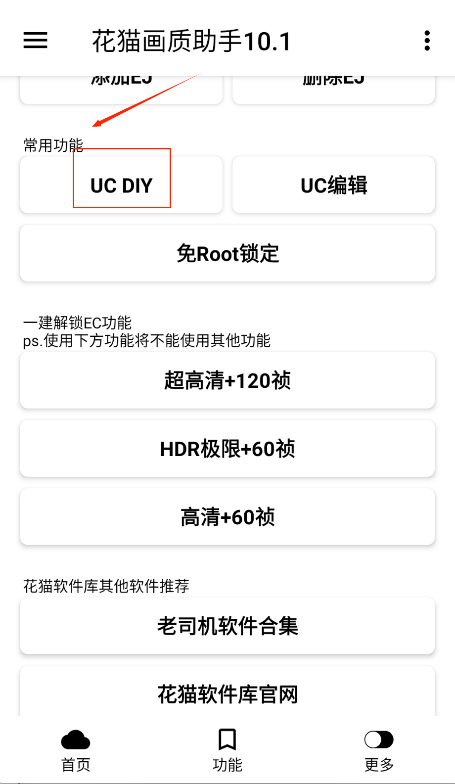 1、在UC DIY功能中可以自定义画质参数,点击进入后可以看到详细的调节选项,包括分辨率、帧率、纹理质量等。