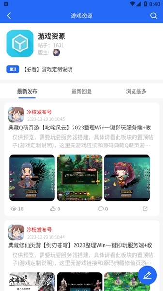 3.例如小编这里选择了游戏板块,这里会有拥有分享自己喜欢的游戏