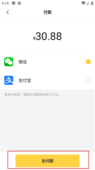 4、进入付款页面后选好支付方式,点击【去付款】按钮,就能完成云手机套餐的支付操作啦。
