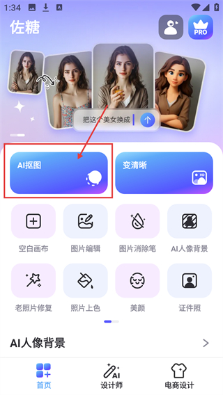 1、在佐糖首页,点【抠图】功能按钮,能进入图片选择页面,准备上传需要抠图的素材啦。