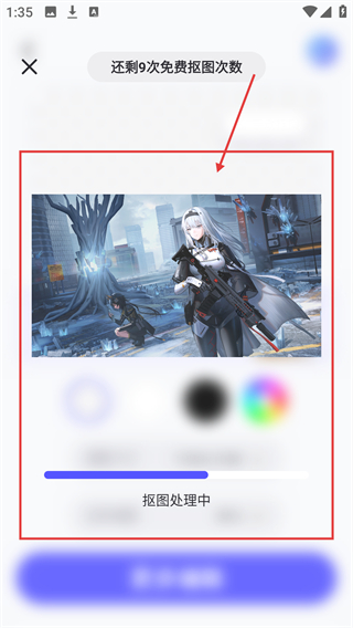 3、选好图片后会进入抠图处理页,等待系统完成抠图操作,过程中能看到剩余免费次数的提示呢。