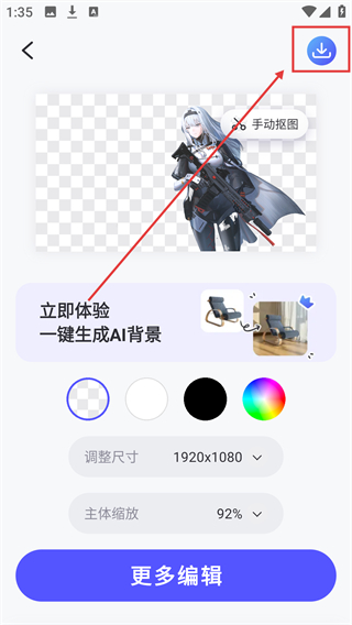 4、抠图完成后,可调整尺寸或更换背景,点右上角下载按钮,就能把处理好的抠图素材保存下来啦。