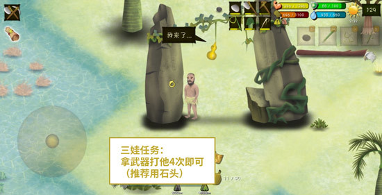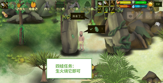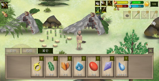 当你开始时,你不能使用工具参加挑战,所以你必须利用你周围的所有资源,在新环境中挑战生存任务,收集物品和食物。