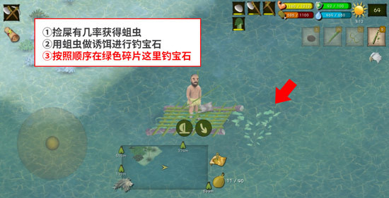 ③首先大家先去捡屎,会有几率获得蛆虫,然后用蛆虫做诱饵钓宝石,按顺序钓宝石即可。