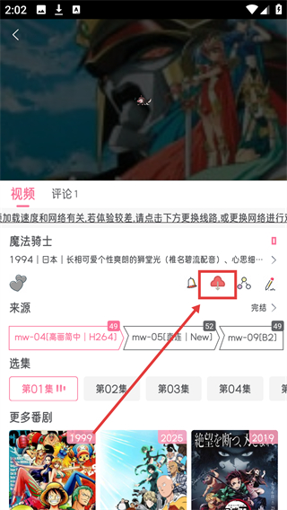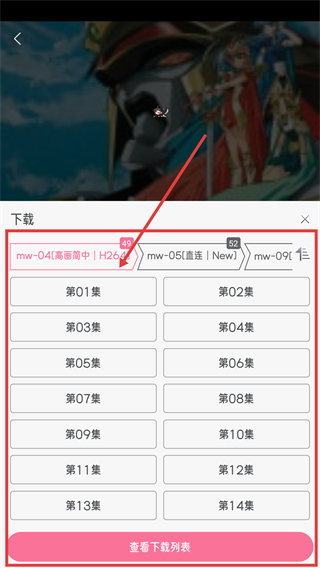 2、在番剧播放界面点击下载图标,进入下载选择界面,准备下载番剧啦。