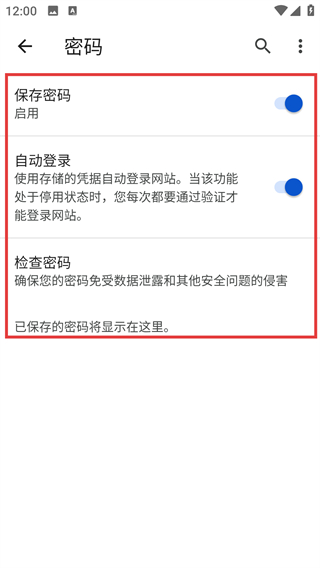 4、在密码管理界面能看到【保存密码】【自动登录】已启用,后续登录网站会自动保存凭据更方便哦。