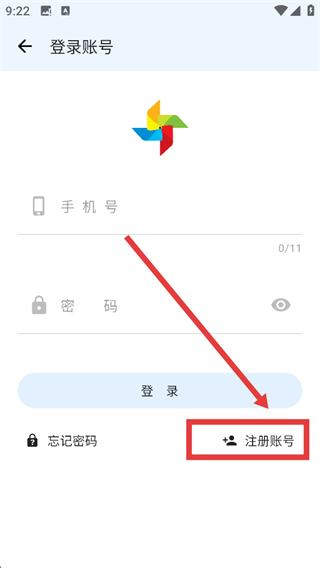 3、登录账号界面点击红框标注的【注册账号】按钮,进入账号注册专属页面。