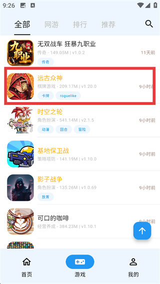 2、单机游戏列表页面选中红框标注的【远古众神】,进入该游戏的详情页面。