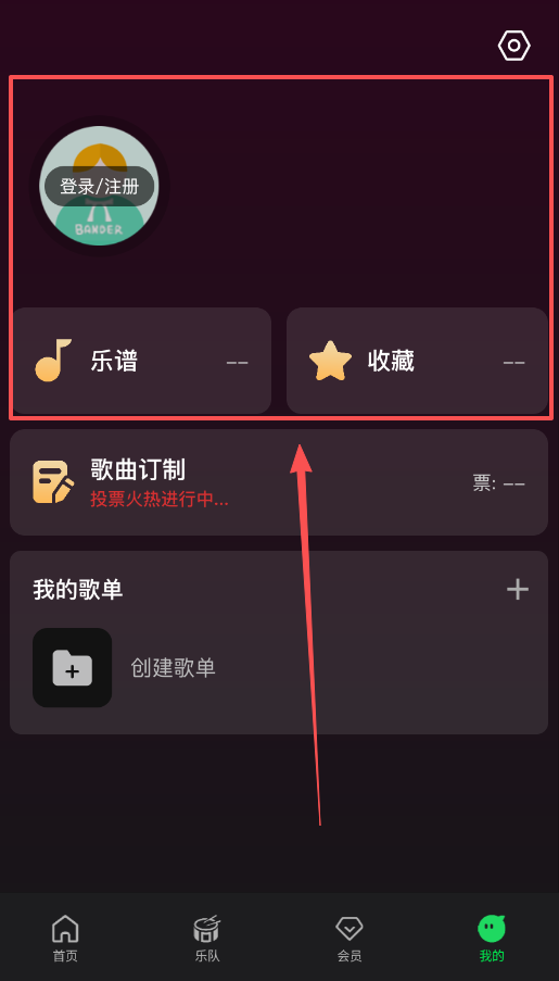 4、在“我的”页面,你可以管理收藏的乐谱,创建个人歌单,还能参与歌曲订制投票,随时查看各类音乐活动信息。