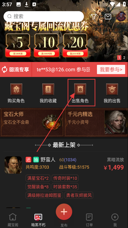1、我们进入软件,若想出售角色,点击【出售角色】,就能进入出售说明页面啦。