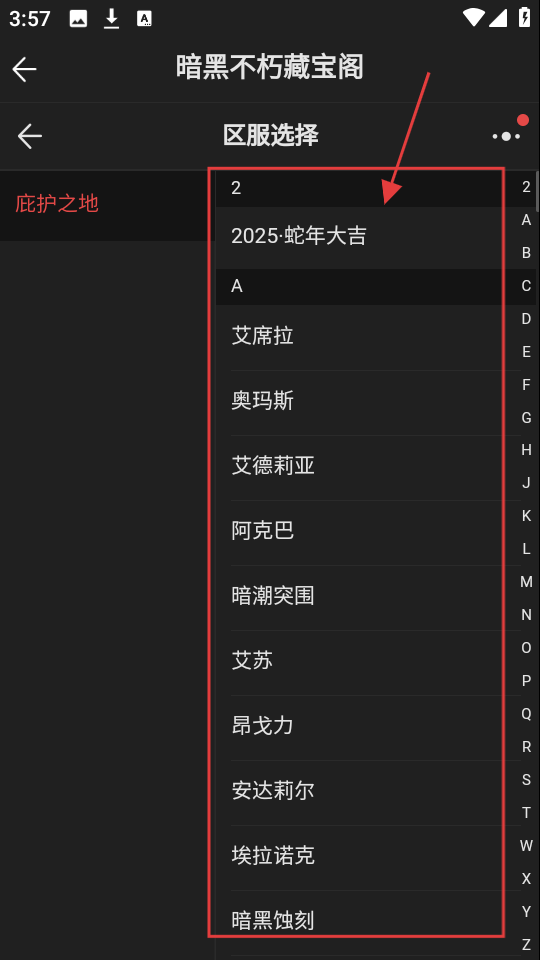 3、在区服选择页面,选择对应的区服,就能进入角色选择环节呢。