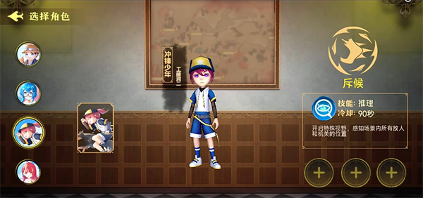 工藤的技能是推理,开启特殊视野,感职场内所有敌人和机关的位置