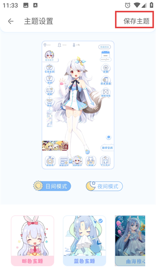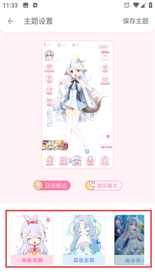 3、在主题设置页能选【粉色主题】【蓝色主题】等样式,还能切换日间/夜间模式,按需调整呀。