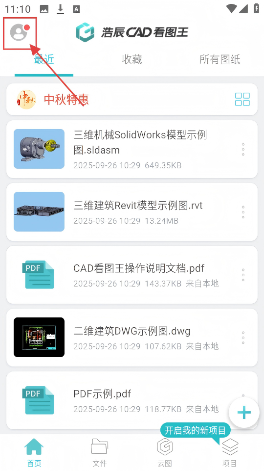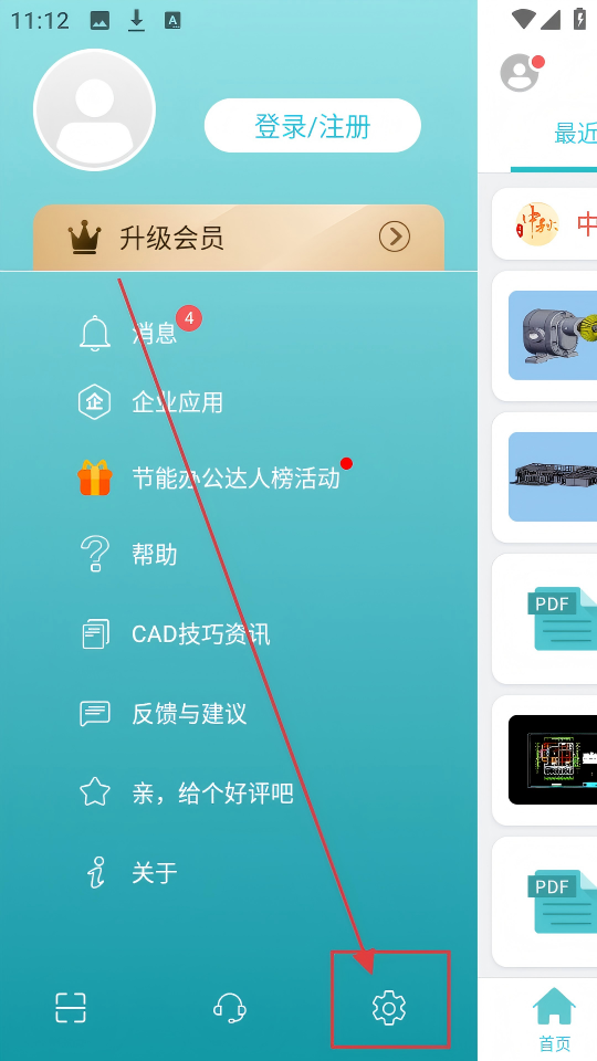 1、打开CAD看图王,点左上角头像,进入个人相关页面,能查看会员、消息等内容哟。