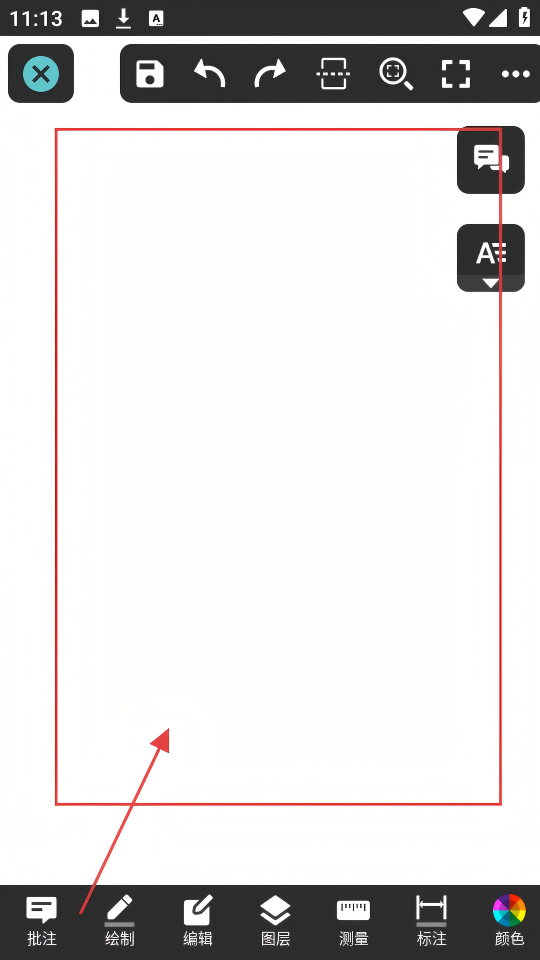 2、点击进入图纸之后,我们可以看到最下方的位置会有一个池子模样的图案,这个就是测量距离的。其中包括很多的距离,比如长度、面积、坐标、弧长和实体等等。