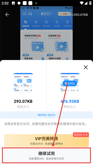 4、在弹出的提示框中,点击【继续试用】按钮,即可启动图片的压缩处理,体验基础的压缩功能啦。