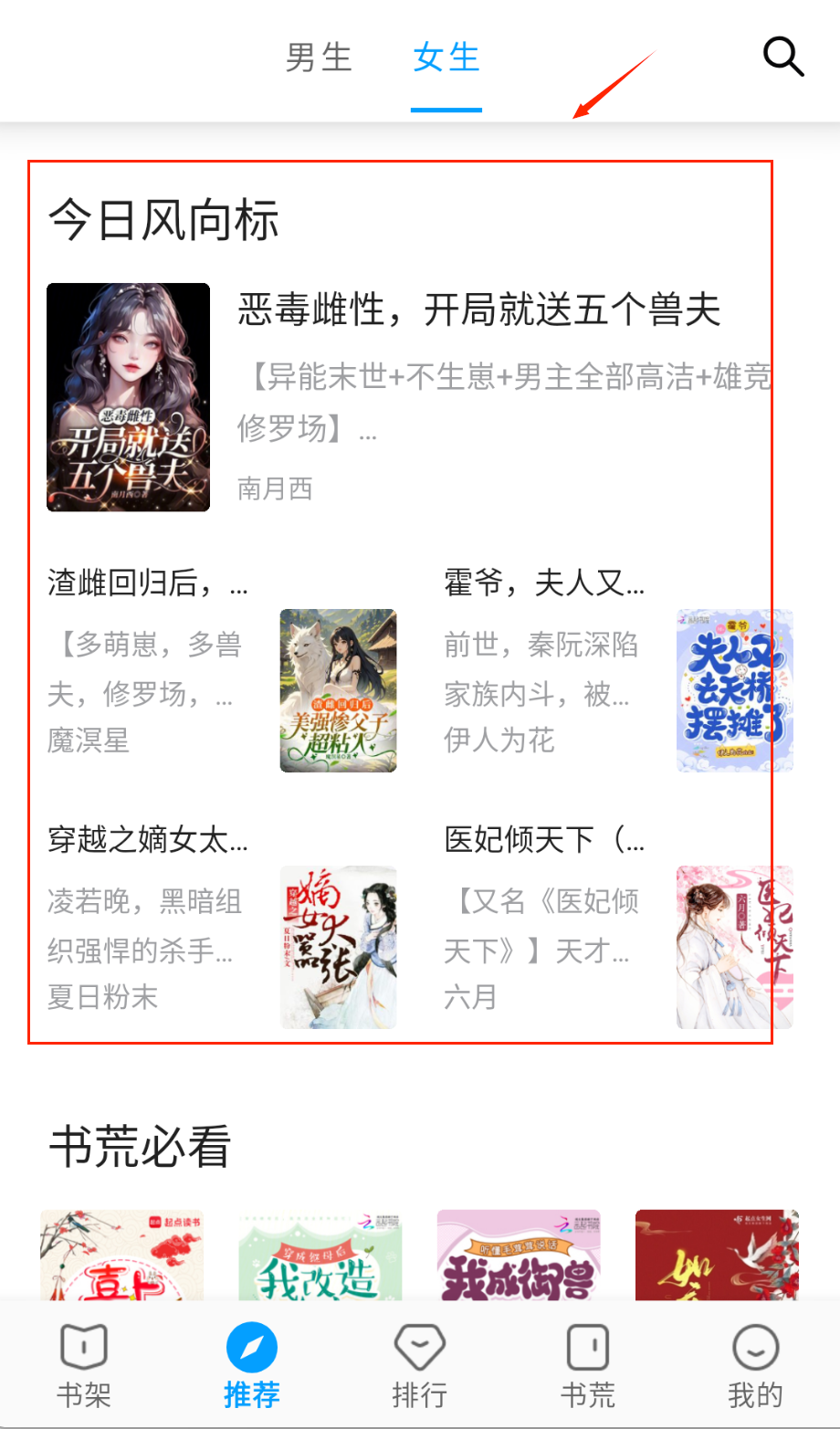 1、打开app后,要是不知道看啥,可以先逛逛首页的推荐区,很多热门好书都在那里展示哦。