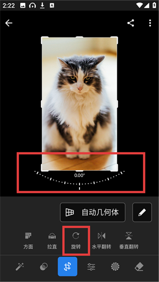 3、在裁剪界面点【旋转】选项,拖动角度条就能调整照片的旋转角度,让画面更规整啦。