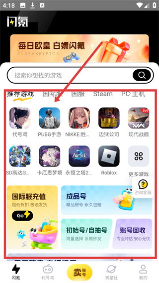 《闪氪国际服充值版》提供手游国际服交易渠道,任何手游的国际服交易都能够来到这里进行使用,让你可以进行更好购买体验进行操作。旨在提供安全便捷的手机游戏充值服务,可快速充值各种手机游戏虚拟货币、游戏道具等。操作界面简单易懂,充值过程简单快捷,同时可以获得优惠活动和奖励,支持多种支付方式,支持当前各种网络游戏的交易服务,包括多种优质账户,极简的交易流程在短时间内获得所需账户并交易,贴心服务让用户得到最佳交易体验。